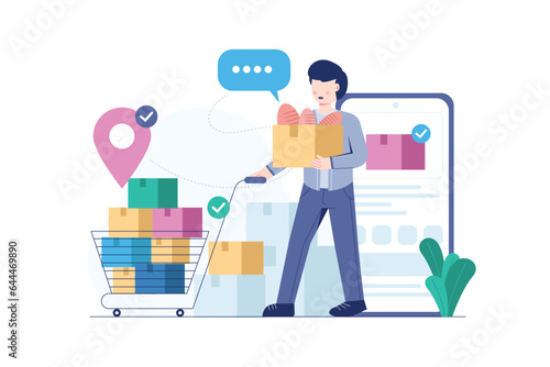 Use data landing page design, website banner template set, flat vector illustration. Businessman analysing data and dashboards on mobile phone. Business analytics mobile app, financial report.