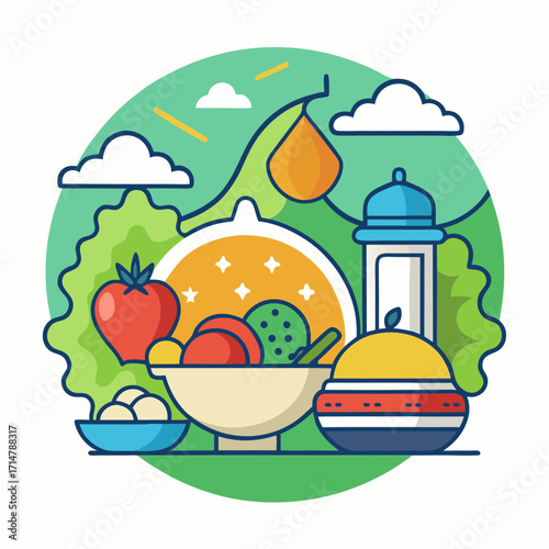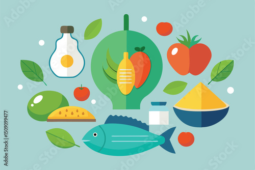 Useful carbohydrates vector flat style design illustration. Carrot, banana, beans, beet, corn, apple, pasta. High-carb foods composition for web banner, website page etc.