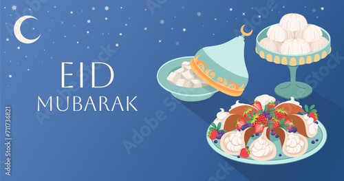 Useful proteins vector flat style design illustration. Chicken and beef meat, milk, cottage cheese, eggs, mushrooms, beans. High protein foods composition for web banner, website page etc.