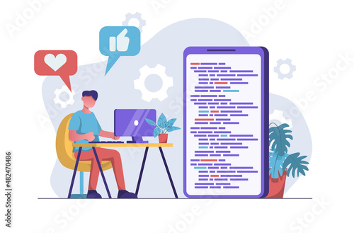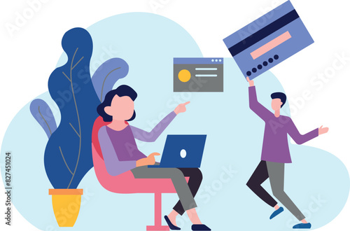 Vaccinated for Covid-19 traveler couple looking at huge smartphone with vaccine passport or certificate, flat vector illustration. Digital covid travel certificate.