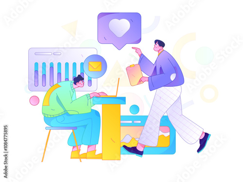 Vaccination for safety travel and access abroad scene. Vector illustration of man traveler with suitcase luggage and immunity passport on smartphone over huge vaccine health certificate