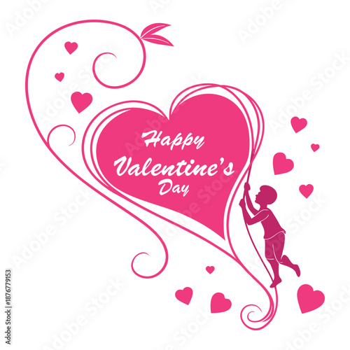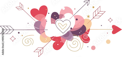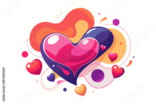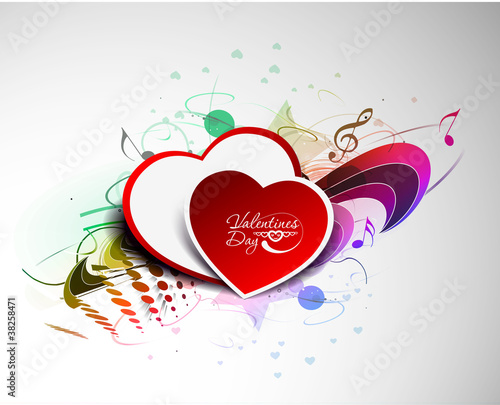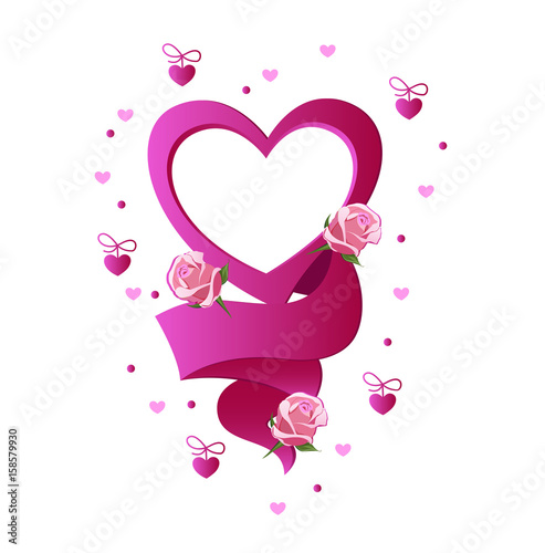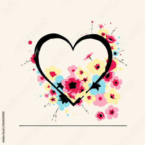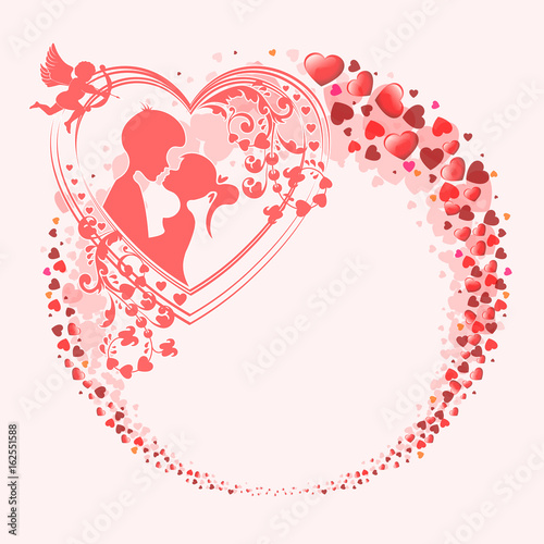 Layered paper cut heart with happy couple holding hands inside and beautiful flowers around it. Vector illustration in paper art craft style. Valentines Day greeting card template.