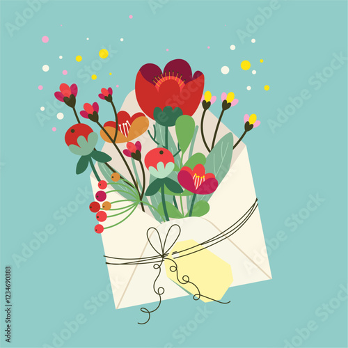 Open gift box with hearts, strawberries, music notes, key from heart lock flying out of it. Vector illustration in paper art style. Happy Valentines Day greeting card poster, banner design template.
