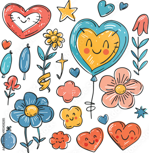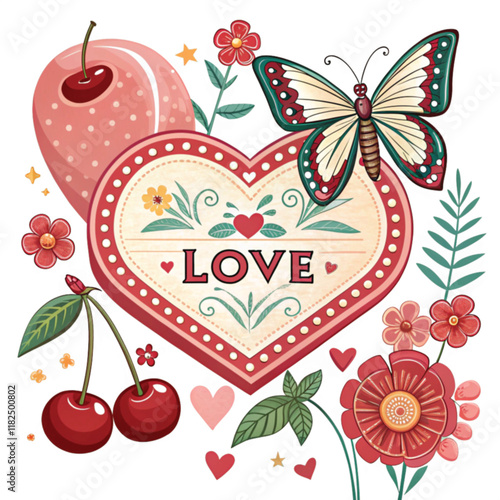 Valentines day seamless pattern, vector illustration. 14 February Valentine day design decoration background with flowers, candy, letter.