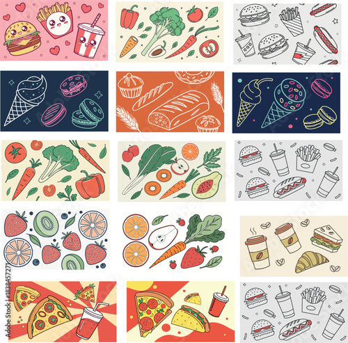 Valentines Day vector posters set with love stickers, romantic couple, love letter. 14 february illustration greeting card templates. Happy couple with flower decoration, stickers and valentine icons.