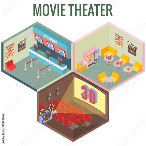 Laundry service vector flat 3d isometric illustration. Cutaway laundry interior with reception, ironing room, commercial and self-service laundry.