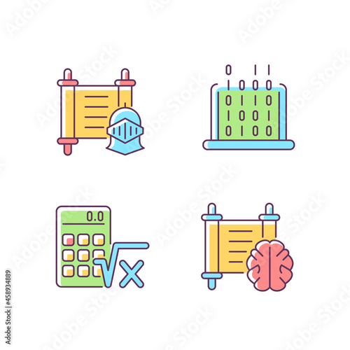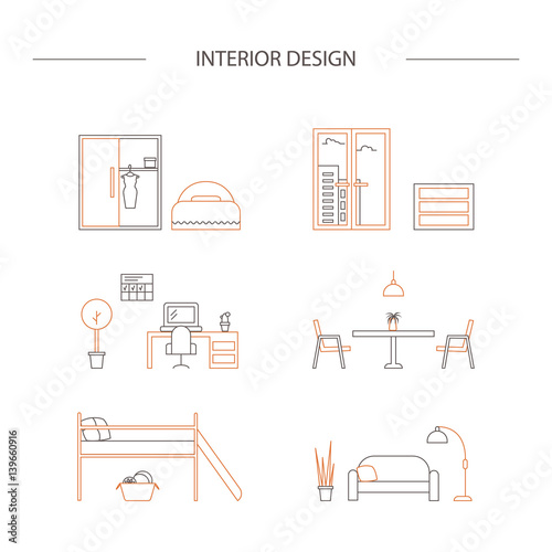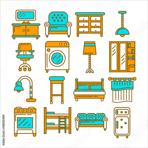 Vector 3d printer flat thin line icon set. Ceramics, medical, food and house 3d printing technologies concept design elements isolated on white background.