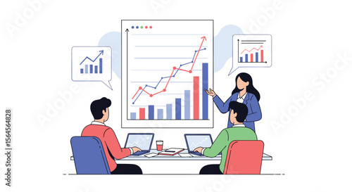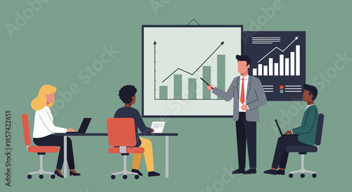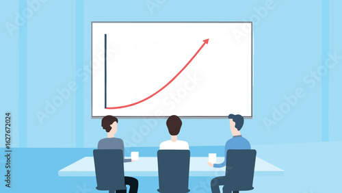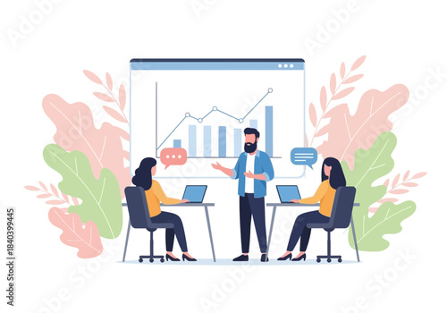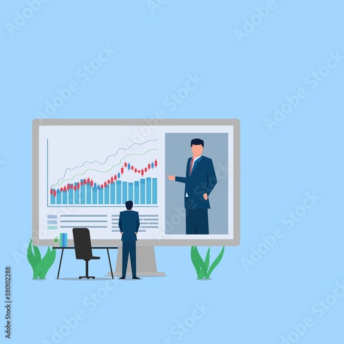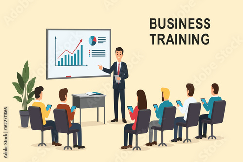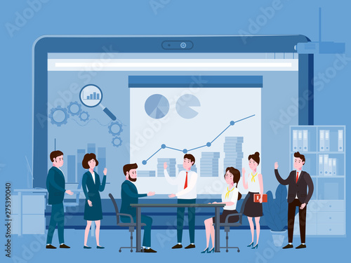 Vector banner concept with business presentations and meetings. Flat design of business people or office workers. Office interior.