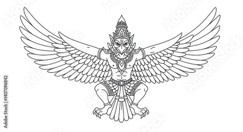 Vector raven bird tattoo or t-shirt print design. Sketch black raven with spread wings combined with nature, moon phases and boho elements.