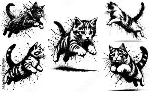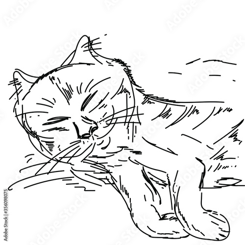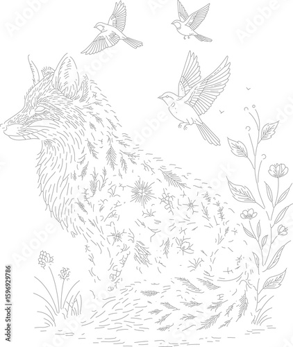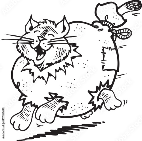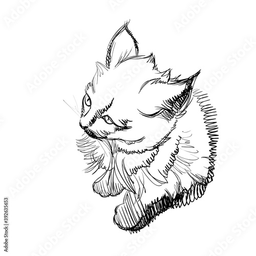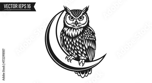 Vector boho cat tattoo or t-shirt print design. Cat head on crescent moon combined with nature and boho elements.