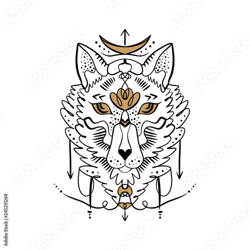 Vector boho owl tattoo or t-shirt print design. Owl on crescent moon combined with nature and boho elements.