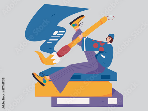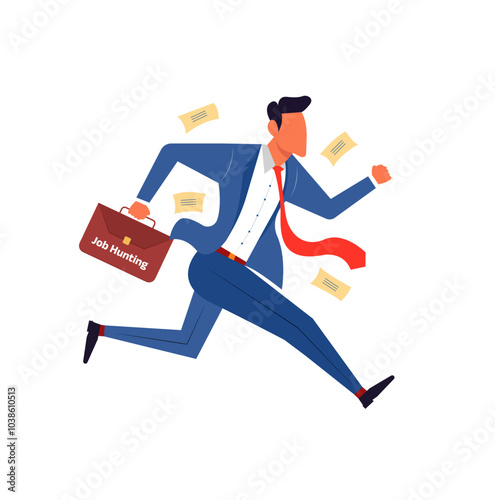 Vector businessman with briefcase running fast icon. Person in suit with suitcase late isolated on white background