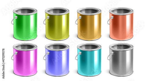 Vector canned food realistic package mockup set isolated on white background. Metal tin can preserve conserve blank templates.