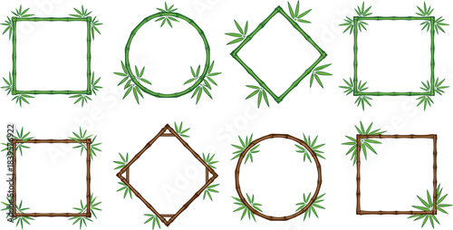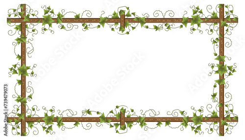 Vector climbing plants frame and creeper stand. Green liana and ivy decorative element set isolated on white background. Cartoon home and garden jungle illustration