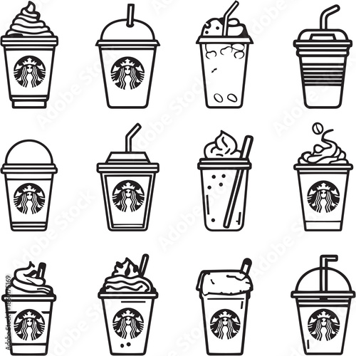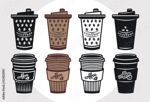 Vector coffee quote lettering on paper cup set. Calligraphy hand written phrases and sayings about coffee. Vintage creative typography design for coffee shops and print.