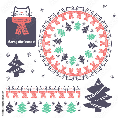 Vector collection of 8 seamless Merry Christmas and Happy New Years patterns with dark blue and white backgrounds, traditional holiday symbols - Santa Claus, reindeer, ornament, fir-tree, snowflakes.
