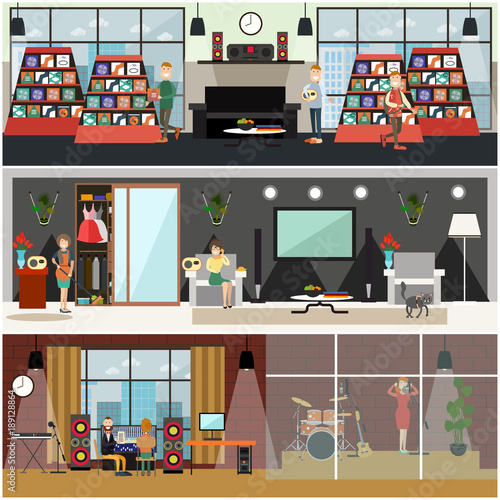 Vector commercial cleaning services poster, banner set. Flat style design elements for cleaning company business advertising.