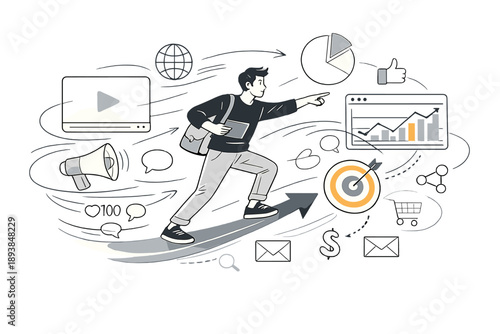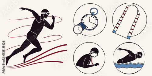 Vector concept illustration on horse riding theme with set icons, whip, jockey boots, gloves and helmet, horse, saddle and equipment. Equestrian sport. Flat design.