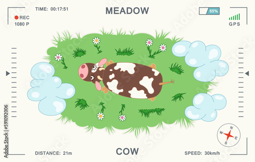 Vector concept poster of beef farm. Grazing cattle on a pasture.
