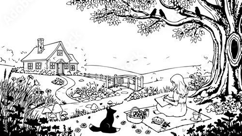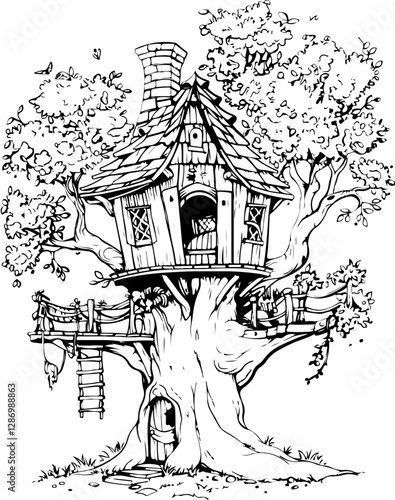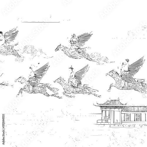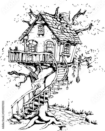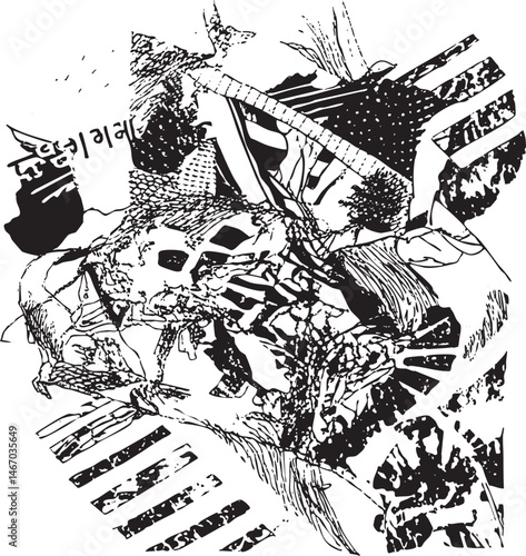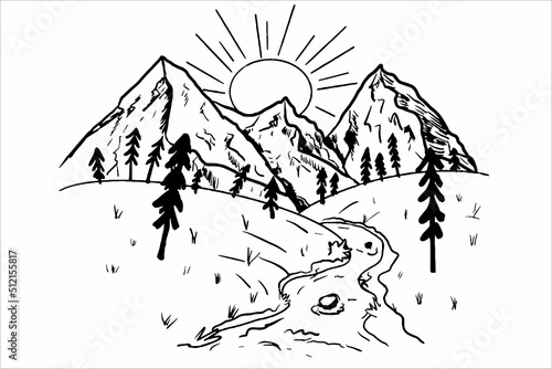 Eagle tattoo art style. Vector geometric tattoo sketch. Vintage hand drawn eagle, mountains, forest.