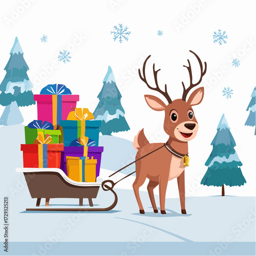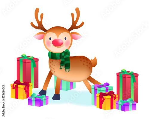 Vector cute Christmas fox animal cartoon illustration. Winter holiday happy character card design for xmas and new year greeting. Doodle character wearing reindeer horns and mistletoe headband