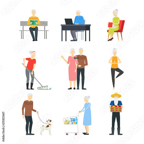 Vector set of aged people cartoon characters isolated on white background. Elderly men and women icons, flat style design elements.