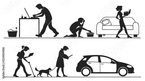 Vector icons set of military people and equipment isolated on white background. Flat style design elements.