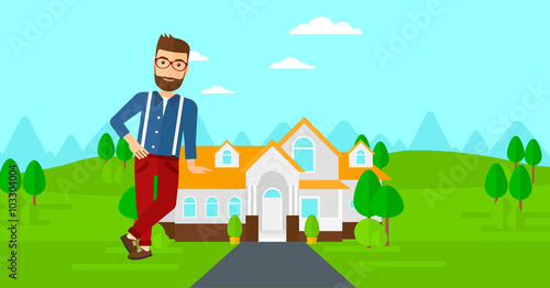 Vector illustration of beekeeper working on apiary. Apiculture concept design element in flat style.