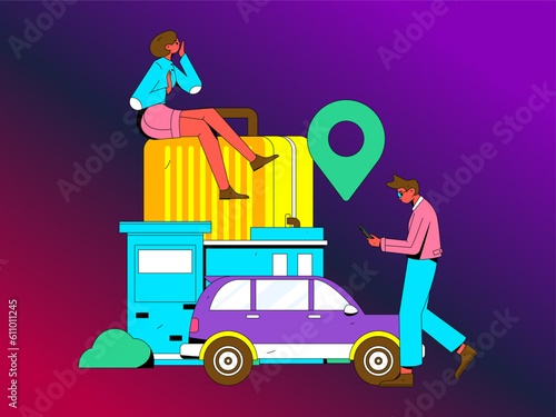 Vector illustration of cleaning woman doing the vacuuming with vacuum cleaner. Cleaning company services concept design element in flat style.