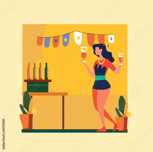 Vector illustration of cleaning woman wiping dust from mirror. Cleaning company services concept design element in flat style.