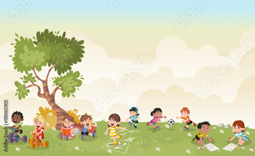 Vector illustration of happy couples taking rest in the park. Loving family couple with their daughter. Lovers boys and girls going out for a date. Flat style design.