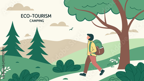 Paparazzi photographer young girl taking photo of famous person or people while lying on branch of tree. Vector flat style design illustration.
