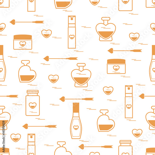 Vector seamless pattern with decorative shaving and grooming symbols, icons. Barbershop background, wrapping paper texture thin line art flat style design.
