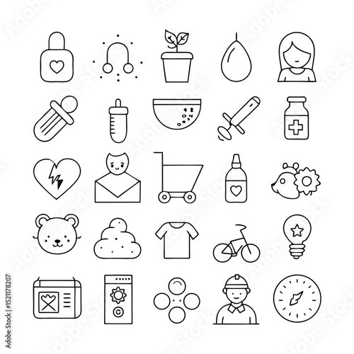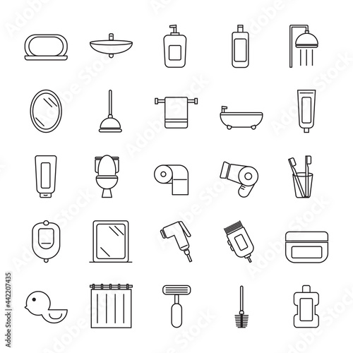 Vector seamless pattern with decorative bathroom symbols, icons. Bathroom background, wrapping paper texture thin line art flat style design.