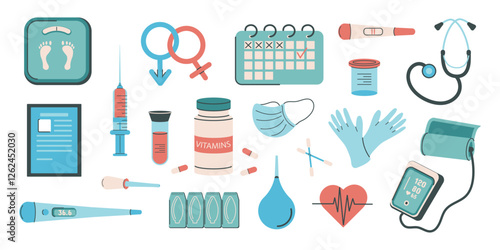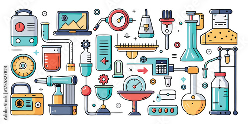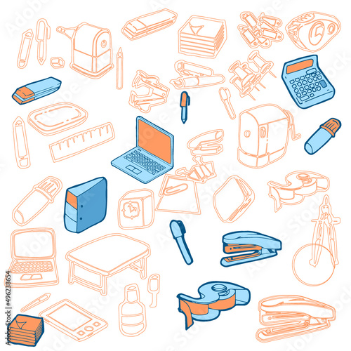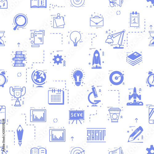 Vector seamless pattern with decorative painting symbols, icons. Art background, wrapping paper texture thin line art flat style design.