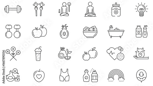 Vector seamless pattern with decorative spa service symbols, icons. Spa and beauty background, wrapping paper texture thin line art flat style design.
