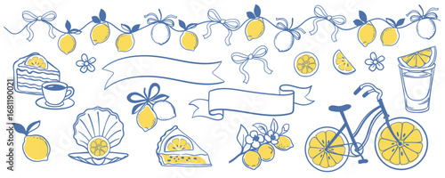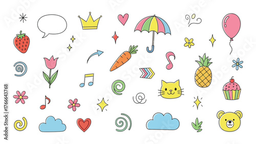 Vector seamless pattern with decorative summer symbols, icons. Summer background, wrapping paper texture thin line art flat style design.