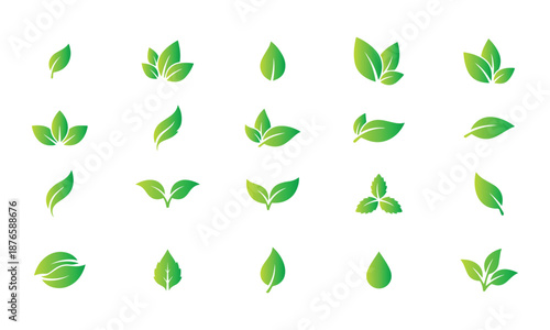 Vector fresh mint leaf set. Spearmint herbal plant swirl, peppermint leaves and ice cubes.