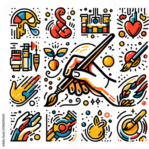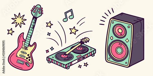Vector set of hand drawn colorful musical instruments isolated on white background. Sketch style illustration.