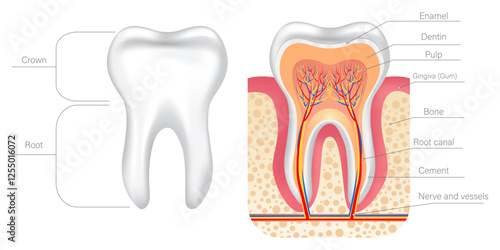 Healthy untreated tooth and dental caries or cavities icon set. Severity of tooth destruction.