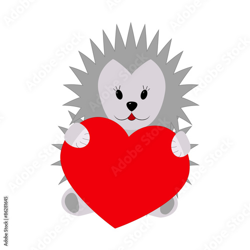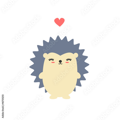 Animal with love vector. Cute hedgehog with spring flower icon illustration. Sweet happy character for valentine, birthday or wedding postcard romantic poster design. Isolated on white background