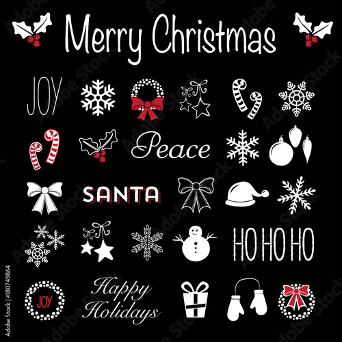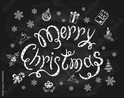 Vector Holidays seamless pattern with candy canes, gifts, fir-trees, snowflakes, lettering. Decorative festive design element for Christmas greeting card, invitation, wrapping paper.