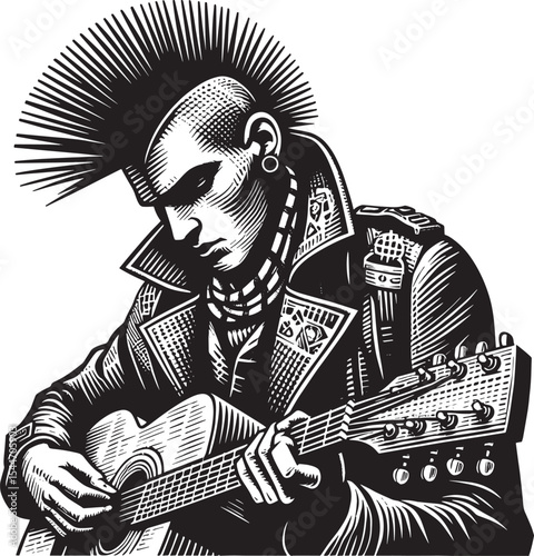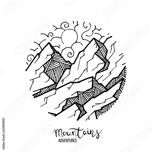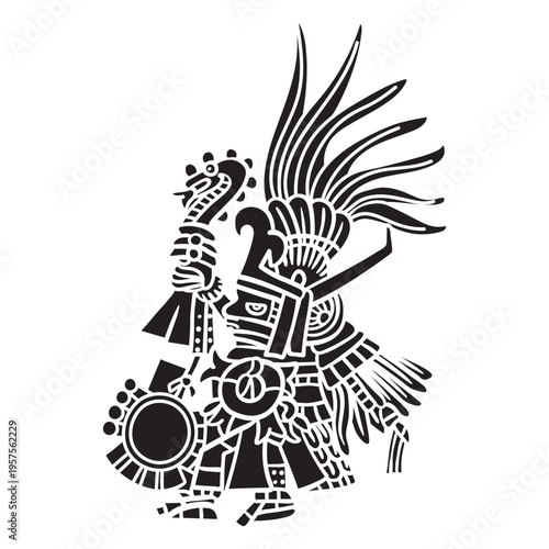 Vector animal tattoo or t-shirt print design. Howling wolf combined with nature, compass rose and geometric shapes.