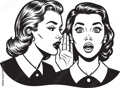 Vector illustration in pop art style. Woman and man talk to each other. Retro comic. Gossip and rumors talks.