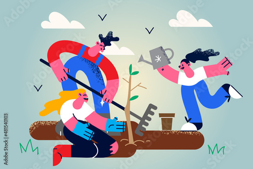 Vector illustration of boy and girl sledding. Cartoon characters. Winter people activities concept design element in flat style.