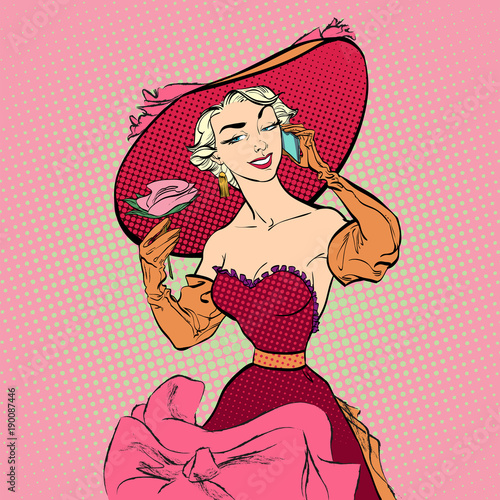Vector illustration of strong business woman boxing in retro comic pop art style. Speech bubble.