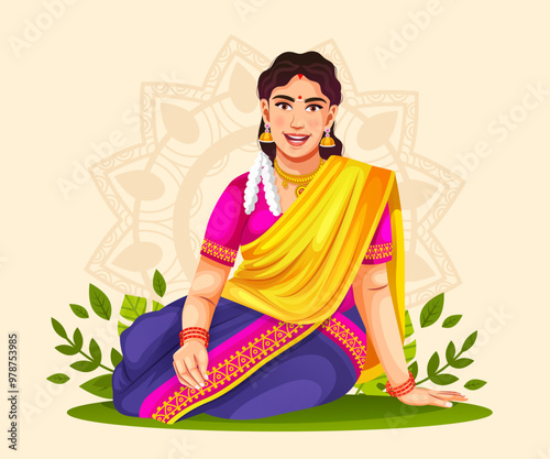 Vector illustration of rich business woman with a hundred dollar bill in retro pop art comic style.