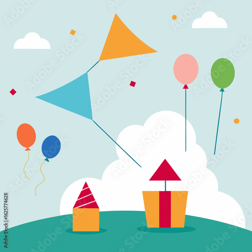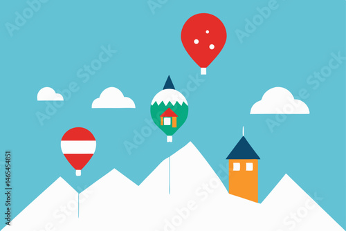 Vector illustration of businesman flying on idea bulb balloon and watching in spyglass. Business vision, new ideas concept design element.