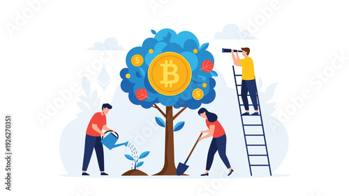 Vector illustration of businessmen picking dollars from money tree. Money plant. Business growth, financial success concept design element in flat style.