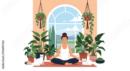 Vector illustration of cave people exposition in museum in flat style. Paleolithic primitive family, museum interior.